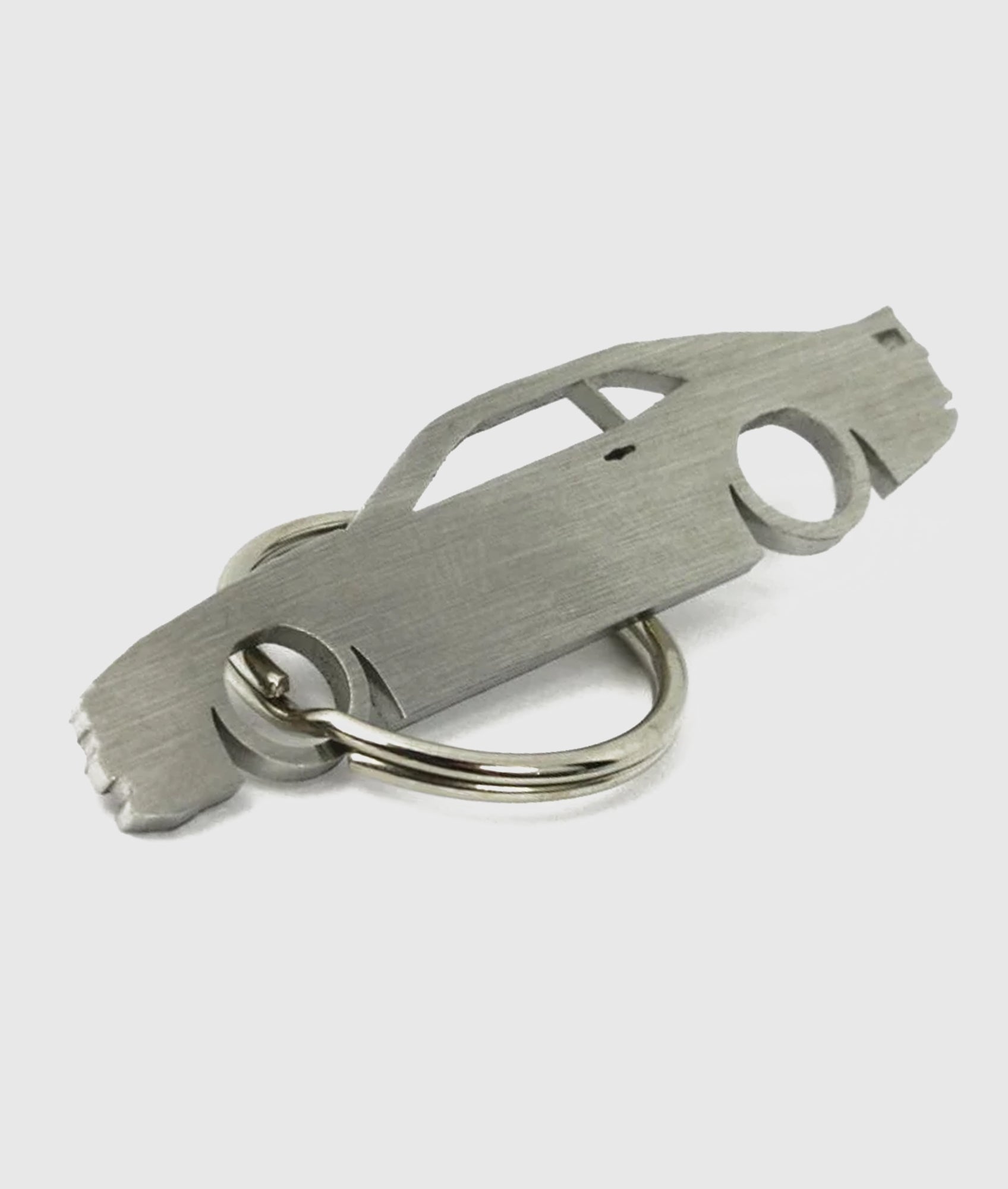 Stainless steel key ring with both sides polished using a brushed effect.