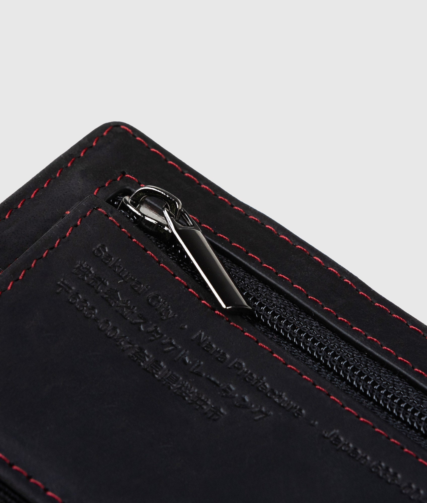 Izumiotsu is a minimalist style that packs a punch, with Black Full Grain Suede Leather with contrast red stitching and debossed logos and type, which only looks better with age.