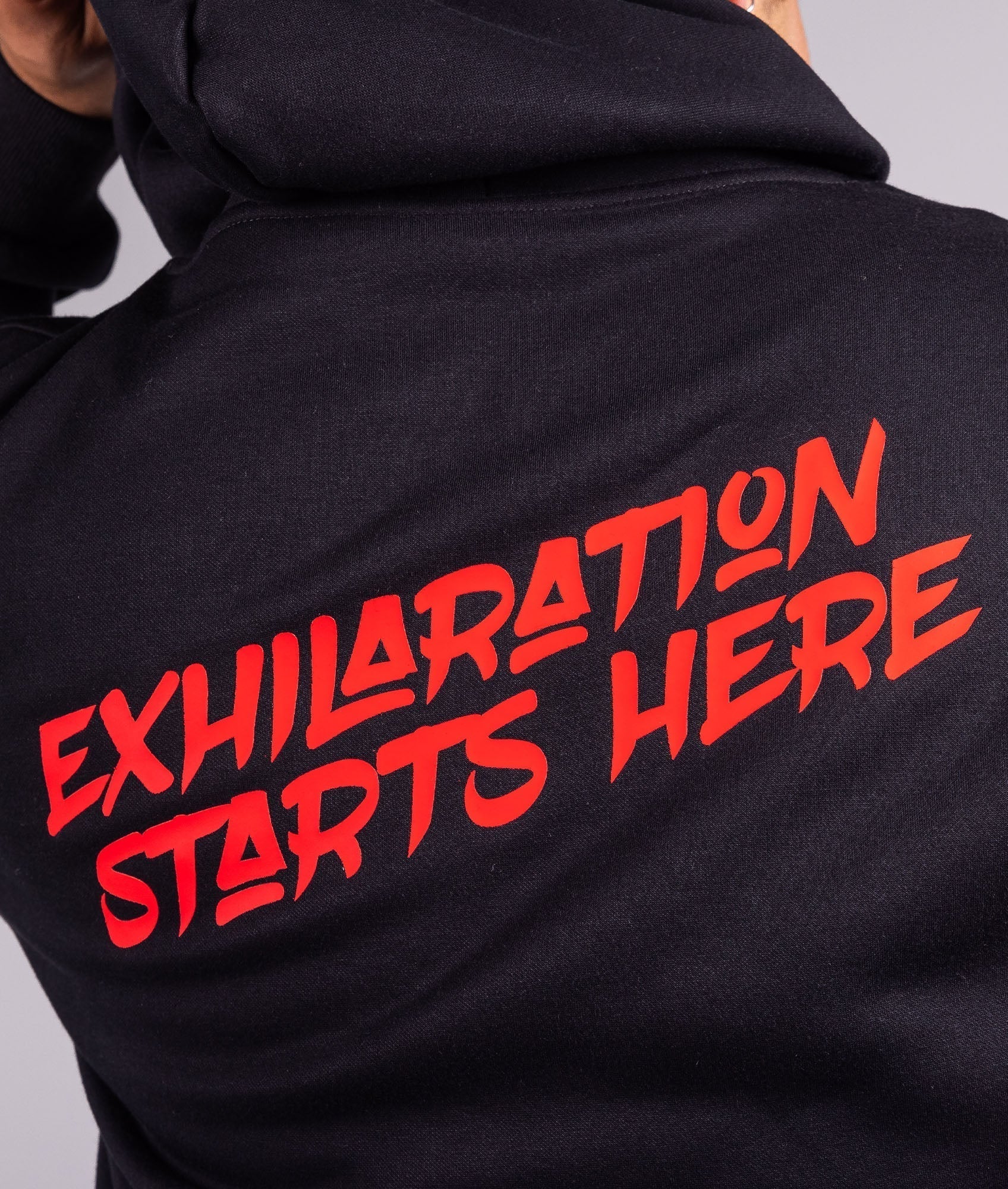 This hoodie features a bold Link logo on the front and their "Exhilaration starts here" slogan on the back, custom-colored drawstrings, and tags all printed on a high quality, tailored hoodie.