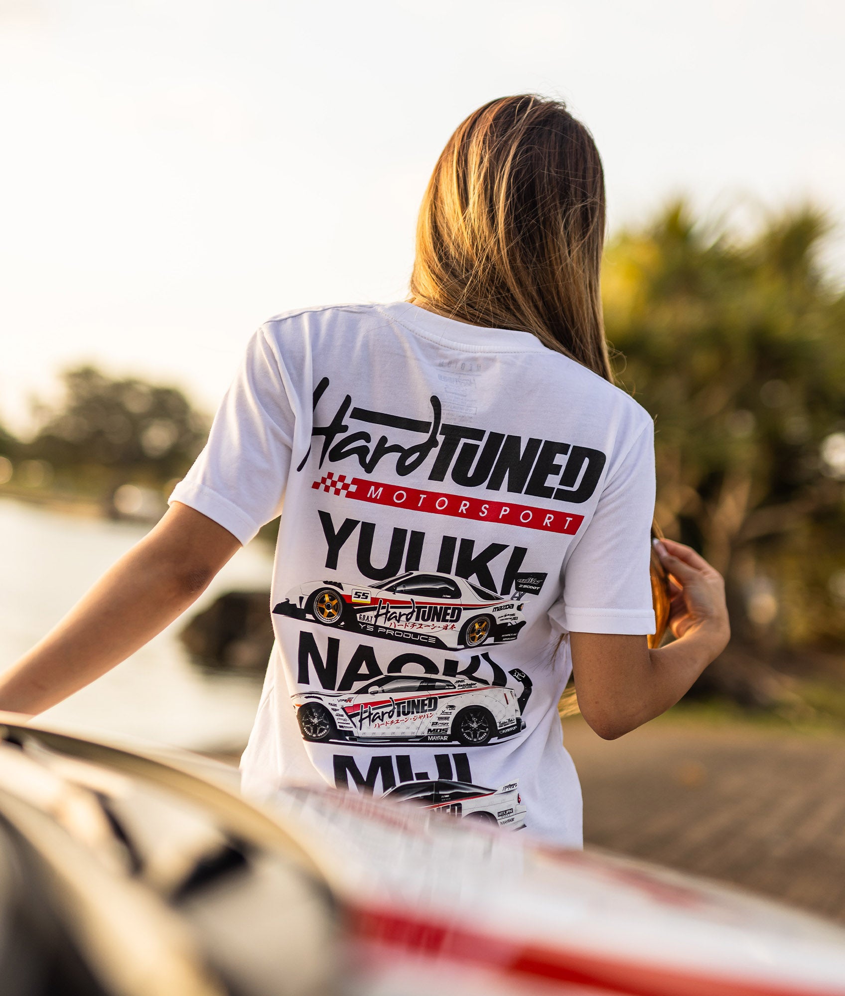 Featuring Hardtuned's three powerhouse drivers - Yuuki Kamakura, Naoki Nakamura, and Miji Takagi, these tee were a sellout at the event. Now's your chance to feel a part of this iconic team.